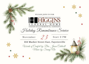 Please join us for our annual remembrance service in memory of your special loved one. Word of comfort by Bro. Jason Caldwell and special music by Sunny Nix. Refreshments will be served.